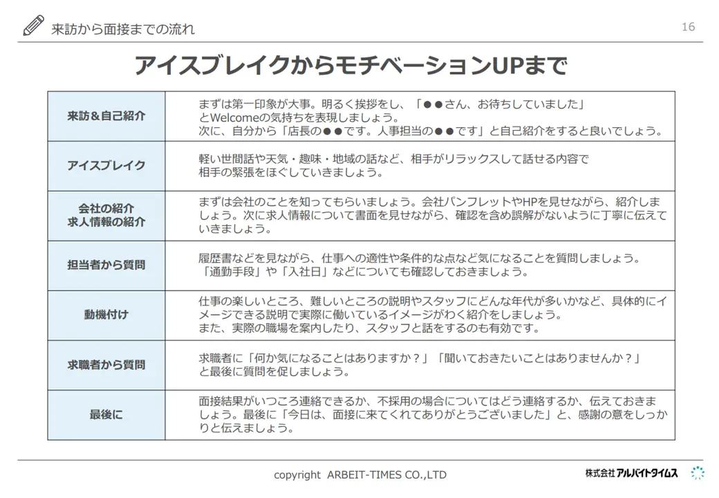 このノウハウBOOKでは、応募対応から面接準備、面接当日の流れや質問事項など、企業や求職者の調査結果から、私たちが考えるヒントについて全30ページでまとめております。ぜひ貴社の採用活動にご活用ください。