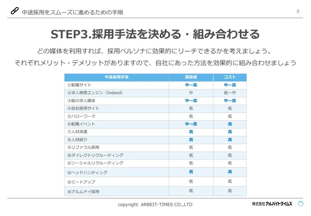 本資料を参考に、中途社員の採用活動をどう進めればよいのか?チェックしていただければ幸いです。