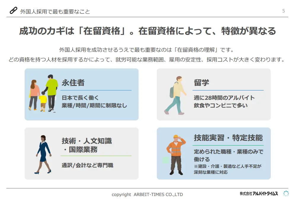 本資料では、初めて外国人採用をしようとしている企業に向けて、現状、超えるべき課題、