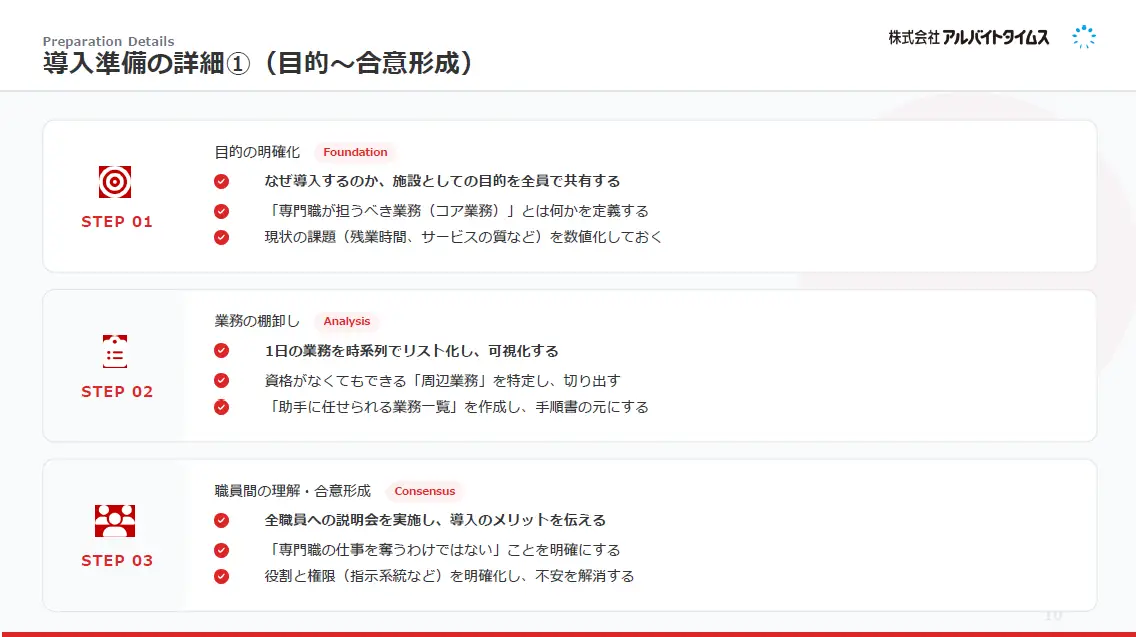 すぐに現場で使える「業務仕分け票」や「導入ステップチェックシート」など、実践的な内容もございます。