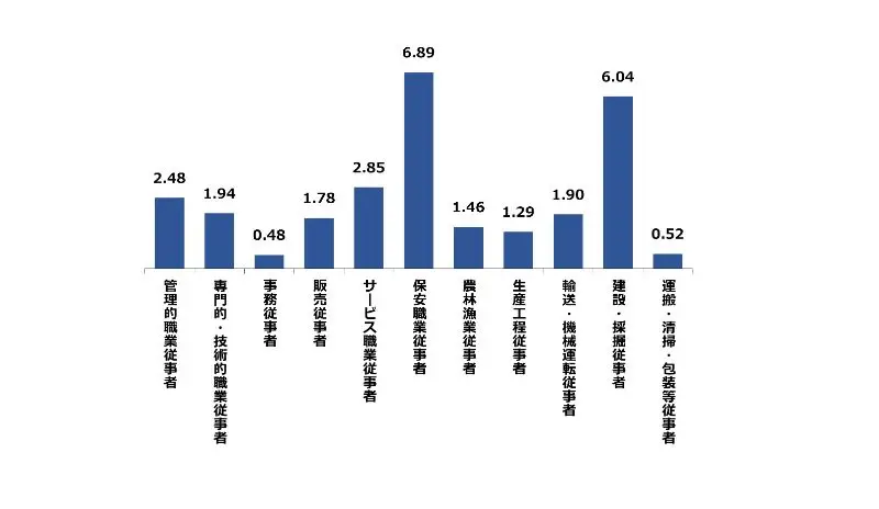 求職者1人に対する求人件数。倍率が1を超えるということは、求職者数よりも求人件数が多い(=採用難)ということを表します。