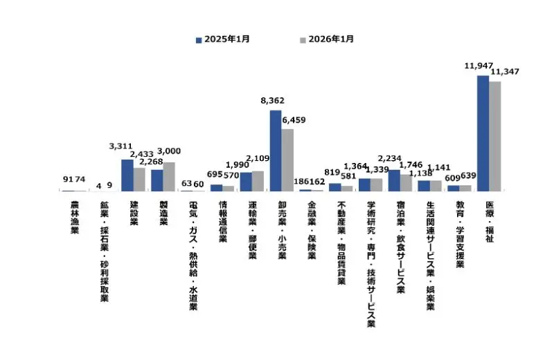 福岡県の主たる産業における、産業別新規求人数
