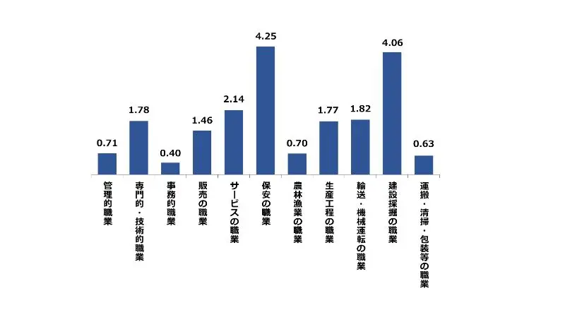 福岡県の職種別の有効求人倍率
