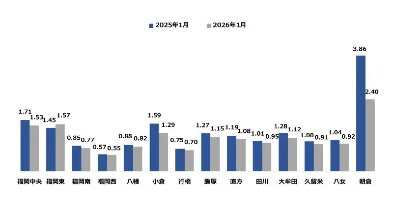 2026年3月現在、福岡労働局からリリースされている2026年1月度の有効求人倍率データをまとめました。