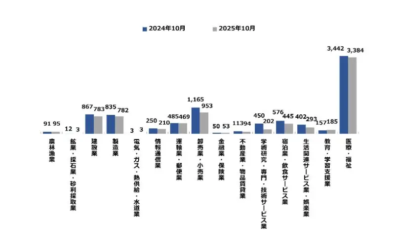 長崎県の主たる産業では、昨年と比較して、教育・学習支援業、金融業・保険業、農林漁業が増加傾向となっております。