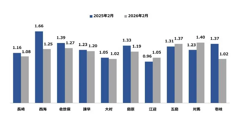 2026年4月現在、長崎労働局からリリースされている2026年2月度の有効求人倍率データをまとめました。