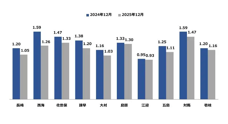 2026年2月現在、長崎労働局からリリースされている2025年12月度の有効求人倍率データをまとめました。