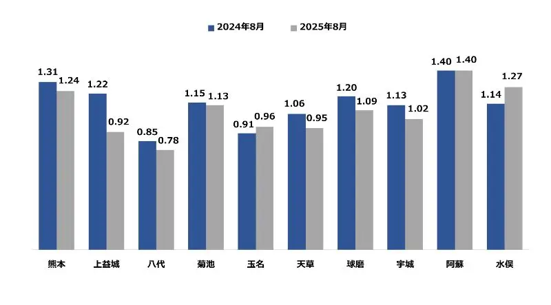 2025年10月現在、熊本労働局からリリースされている2025年8月度の有効求人倍率データをまとめました。