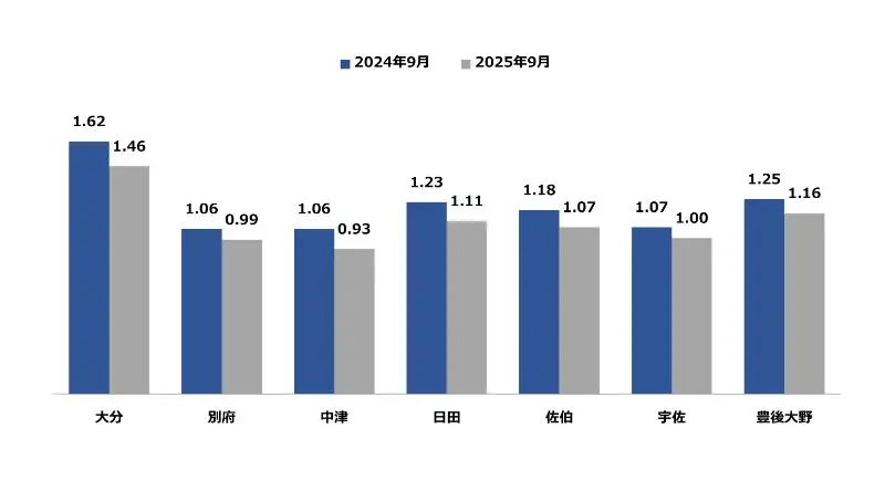 2025年11月現在、大分労働局からリリースされている2025年9月度の有効求人倍率データをまとめました。