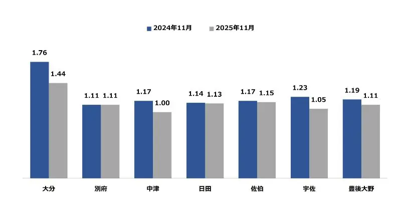 2026年1月現在、大分労働局からリリースされている2025年11月度の有効求人倍率データをまとめました。