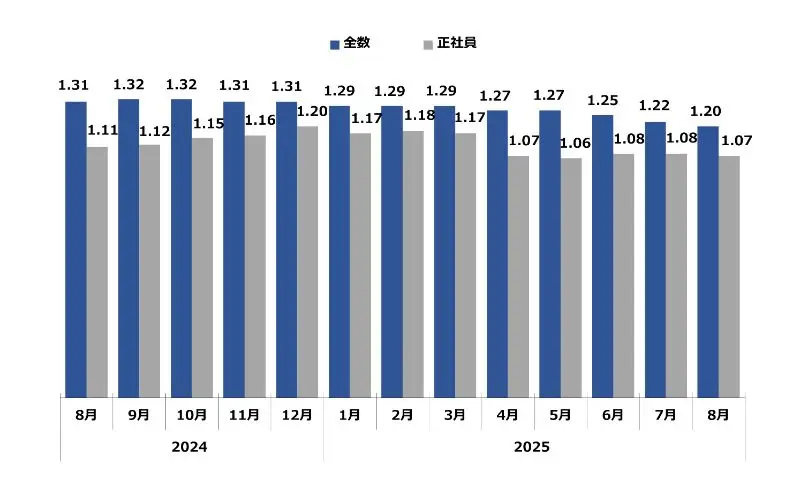 2025年10月現在、宮崎労働局からリリースされている2025年8月度の有効求人倍率データをまとめました。