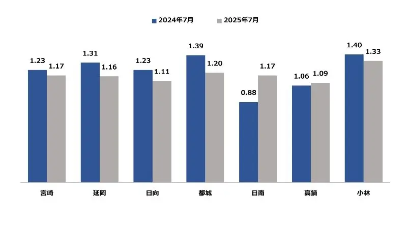 2025年9月現在、宮崎労働局からリリースされている2025年7月度の有効求人倍率データをまとめました。
