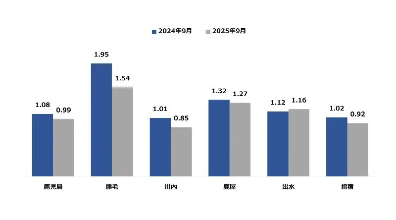 2025年11月現在、鹿児島労働局からリリースされている2025年9月度の有効求人倍率データをまとめました。