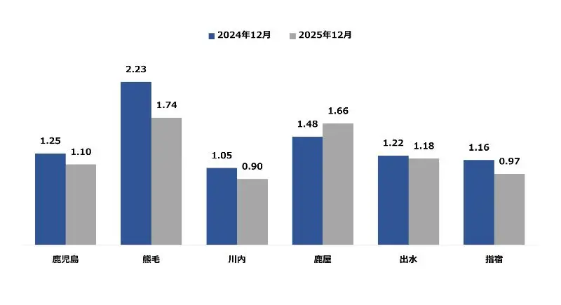 2026年2月現在、鹿児島労働局からリリースされている2025年12月度の有効求人倍率データをまとめました。