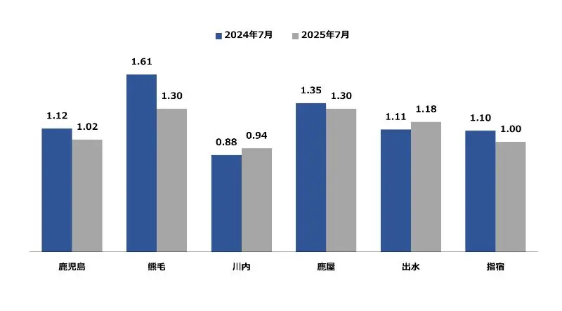 2025年9月現在、鹿児島労働局からリリースされている2025年7月度の有効求人倍率データをまとめました。