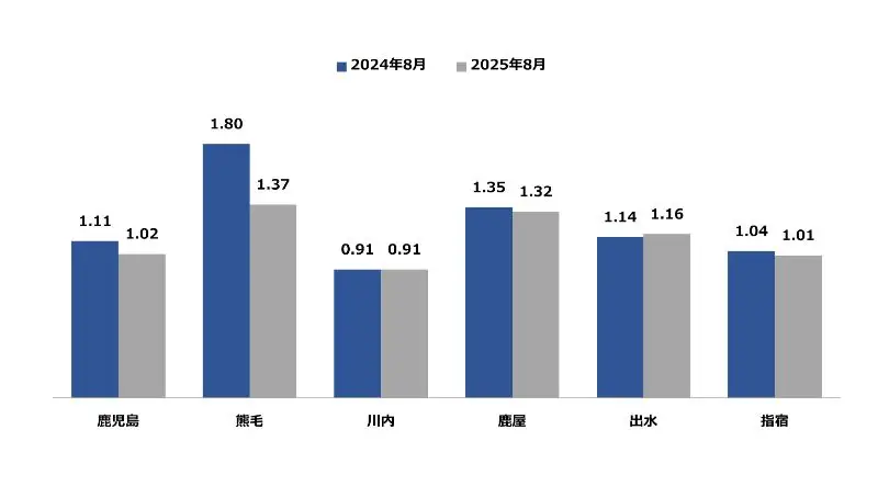 2025年10月現在、鹿児島労働局からリリースされている2025年8月度の有効求人倍率データをまとめました。