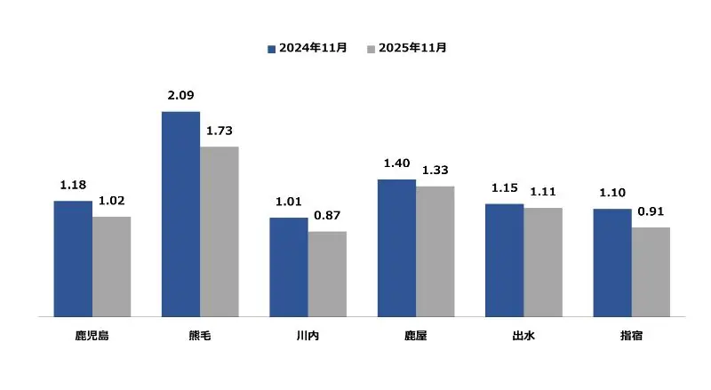 2026年1月現在、鹿児島労働局からリリースされている2025年11月度の有効求人倍率データをまとめました。