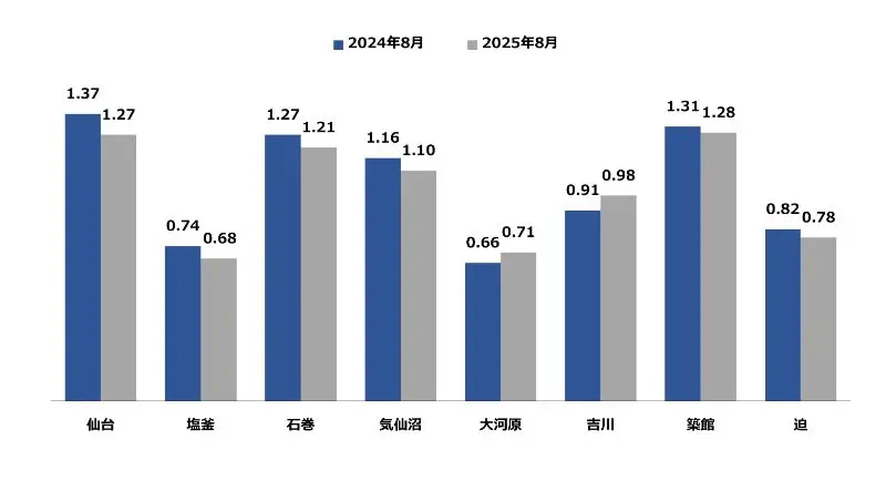 2025年10月現在、宮城労働局からリリースされている2025年8月度の有効求人倍率データをまとめました。