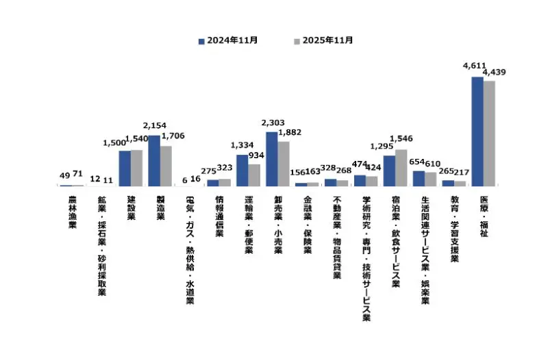 京都府の主たる産業では、昨年と比較して、農林漁業、宿泊業・飲食サービス業、情報通信業などが増加傾向となっております。