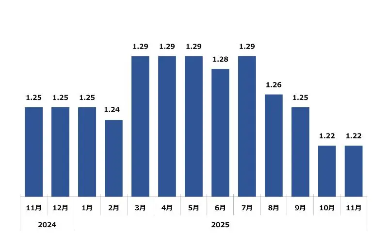 京都府の11月の有効求人倍率は、1.22倍となり前月と同水準、前年同月比では98%となっております。