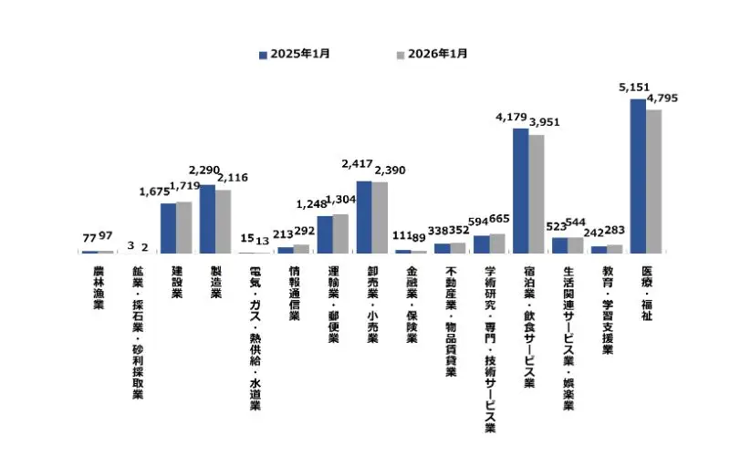 京都府の主たる産業における、産業別新規求人数