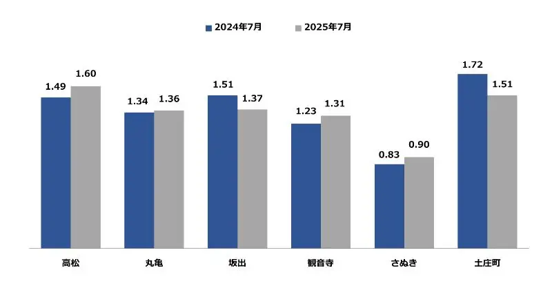 2025年9月現在、香川労働局からリリースされている2025年7月度の有効求人倍率データをまとめました。