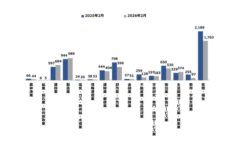 香川県の主たる産業における、産業別新規求人数