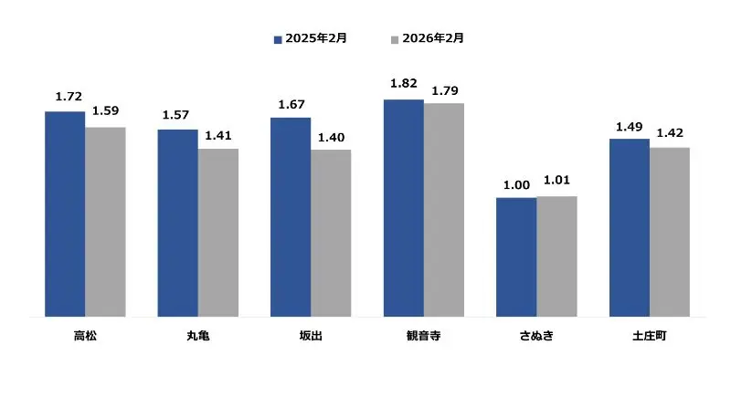 2026年4月現在、香川労働局からリリースされている2026年2月度の有効求人倍率データをまとめました。