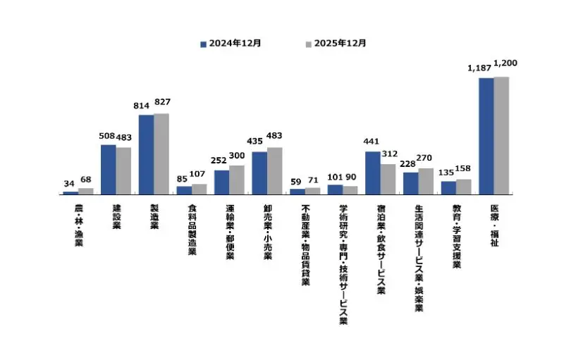 山梨県の主たる産業では、昨年と比較して、農・林・漁業、食料品製造業、不動産業・物品賃貸業などが増加傾向となっております。