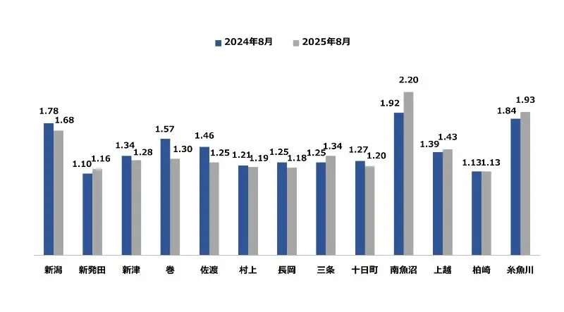 2025年10月現在、新潟労働局からリリースされている2025年8月度の有効求人倍率データをまとめました。