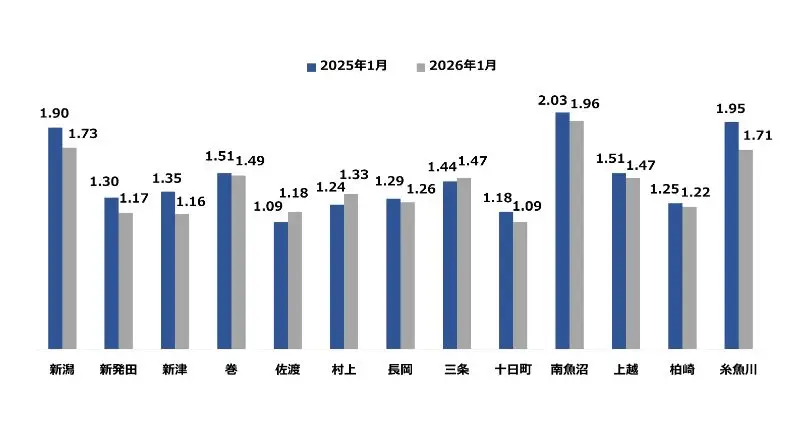 2026年3月現在、新潟労働局からリリースされている2026年1月度の有効求人倍率データをまとめました。
