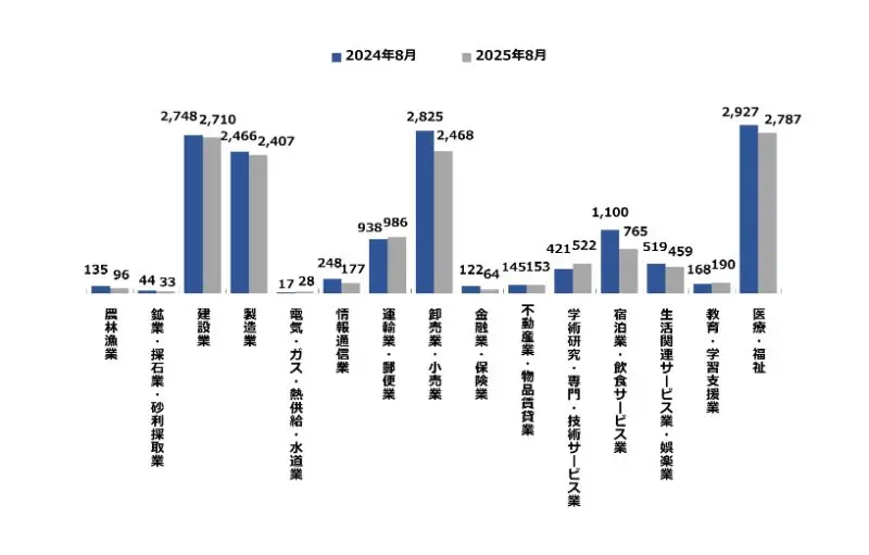 新潟県の主たる産業では、昨年と比較して、電気・ガス・熱供給・水道業、学術研究・専門・技術サービス業、教育・学習支援業などが増加傾向となっております。