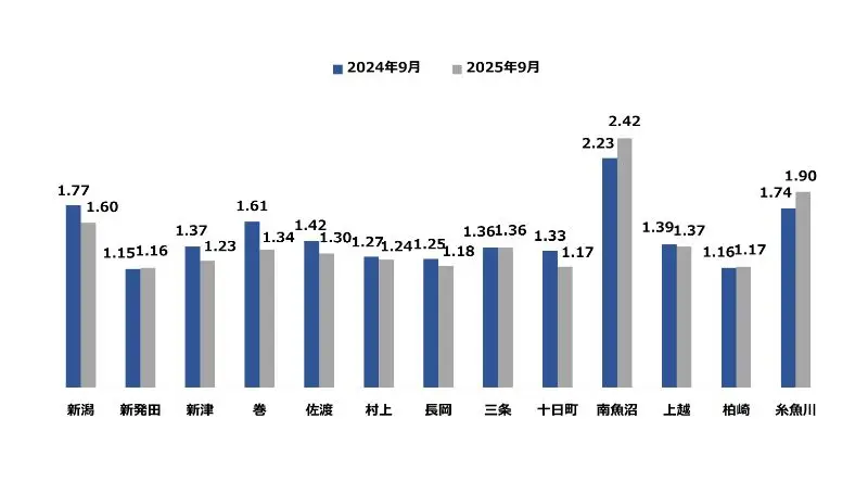 2025年11月現在、新潟労働局からリリースされている2025年9月度の有効求人倍率データをまとめました。