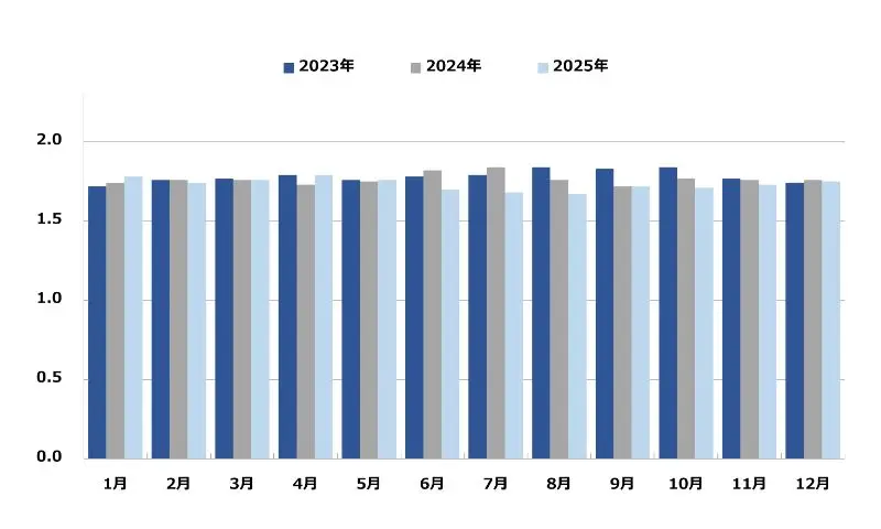 求職者1人に対する求人件数。倍率が1を超えるということは、求職者数よりも求人件数が多い(=採用難)ということを表します。