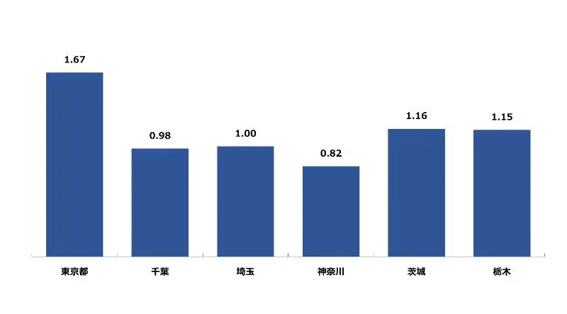 関東地区の8月の地域別有効求人倍率は、東京が最も高く1.67倍、茨城が1.16倍となっております。