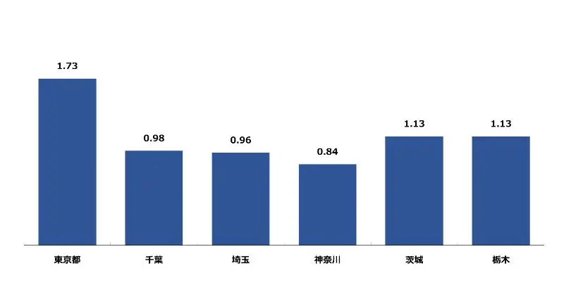 関東地区の2月の地域別有効求人倍率は、東京が最も高く1.73倍、栃木・茨城が1.13倍となっております。