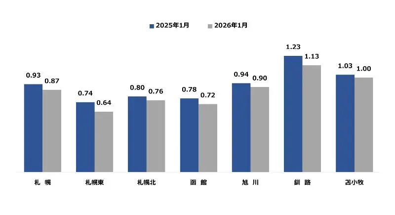 2026年3月現在、北海道労働局からリリースされている2026年1月度の有効求人倍率データをまとめました。