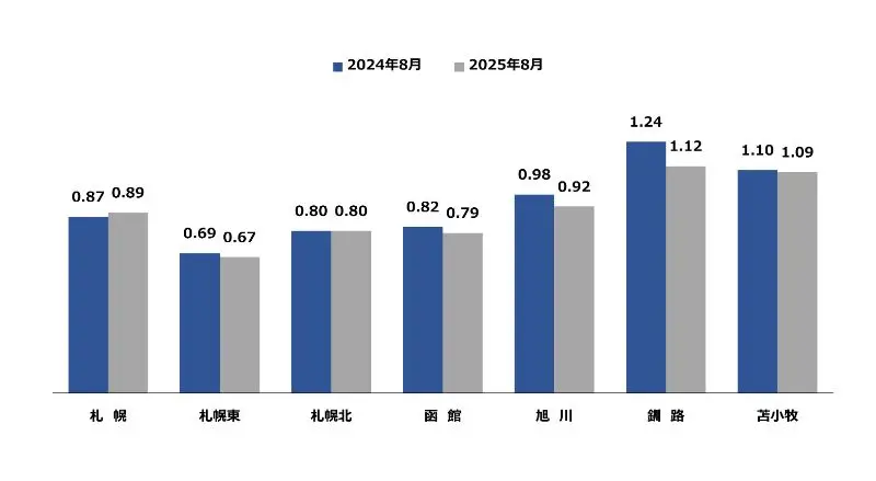 2025年10月現在、北海道労働局からリリースされている2025年8月度の有効求人倍率データをまとめました。