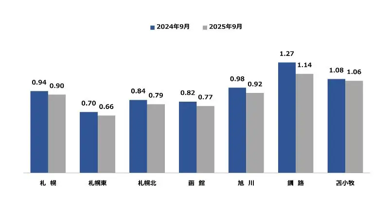 2025年11月現在、北海道労働局からリリースされている2025年9月度の有効求人倍率データをまとめました。