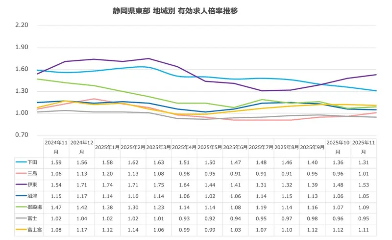 2026年1月更新|静岡県東部の有効求人倍率|エリア別、職種別、年齢別で採用市場が分かる!