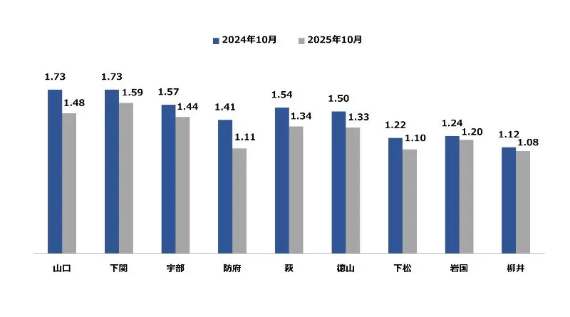 2025年12月現在、山口労働局からリリースされている2025年10月度の有効求人倍率データをまとめました。