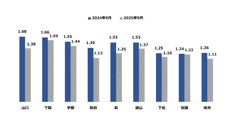 2025年11月現在、山口労働局からリリースされている2025年9月度の有効求人倍率データをまとめました。