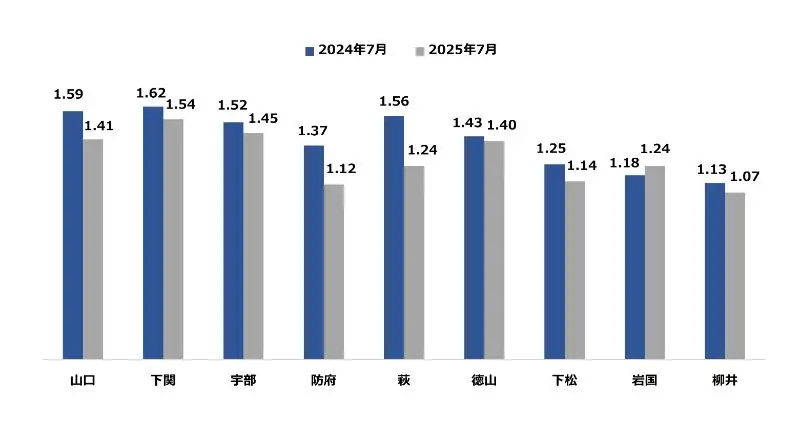 2025年9月現在、山口労働局からリリースされている2025年7月度の有効求人倍率データをまとめました。