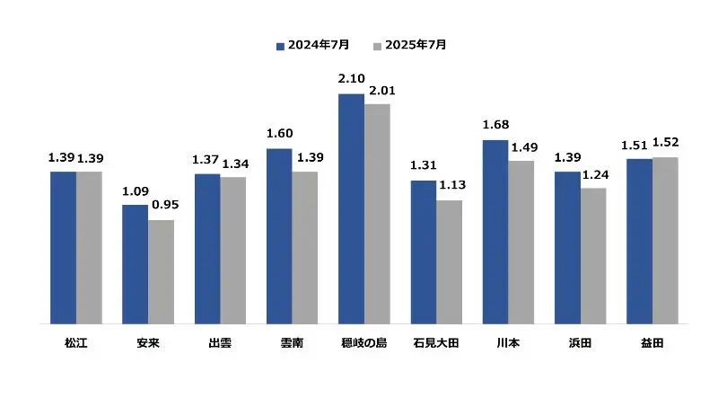2025年9月現在、島根労働局からリリースされている2025年7月度の有効求人倍率データをまとめました。