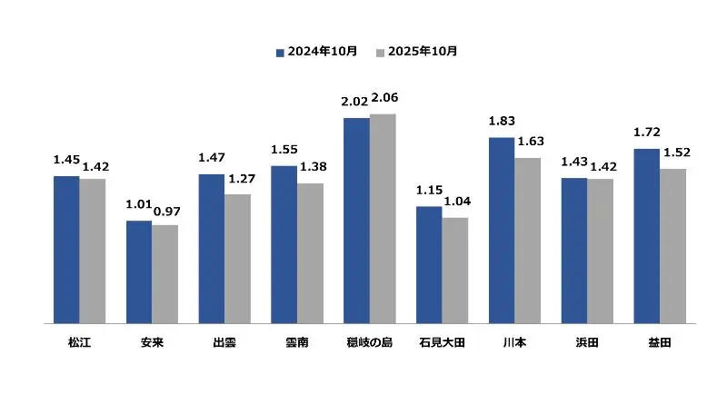 2025年12月現在、島根労働局からリリースされている2025年10月度の有効求人倍率データをまとめました。