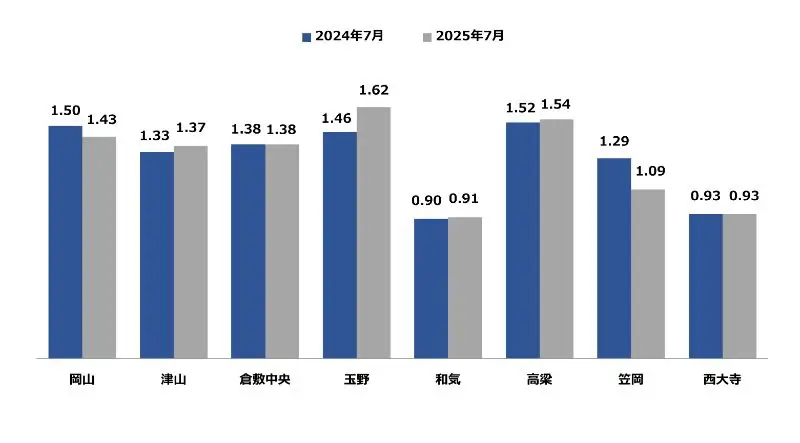 2025年9月現在、岡山労働局からリリースされている2025年7月度の有効求人倍率データをまとめました。