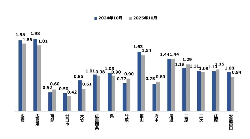 2025年12月現在、広島労働局からリリースされている2025年10月度の有効求人倍率データをまとめました。