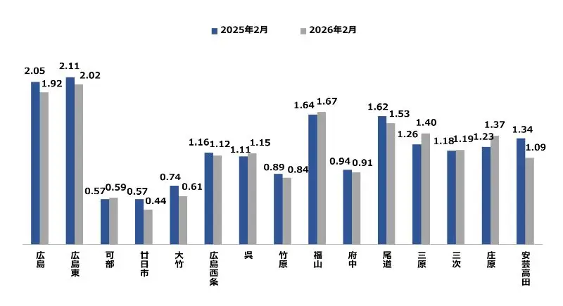 2026年4月現在、広島労働局からリリースされている2026年2月度の有効求人倍率データをまとめました。
