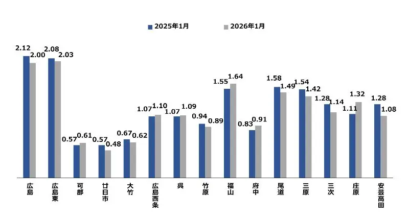 2026年3月現在、広島労働局からリリースされている2026年1月度の有効求人倍率データをまとめました。