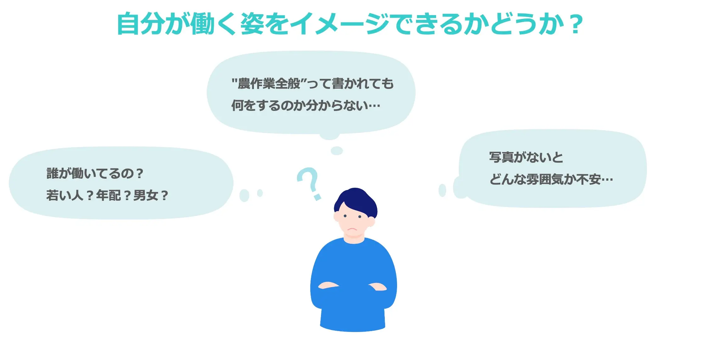 特に農業は、体力的な不安や季節要因によるイメージの影響が大きい業種です。